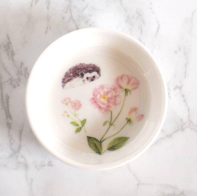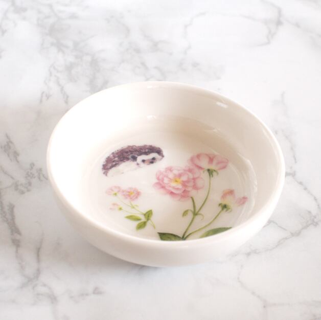 ハリネズミとピンクフラワーを組み合わせた可愛いミニ小皿になります。