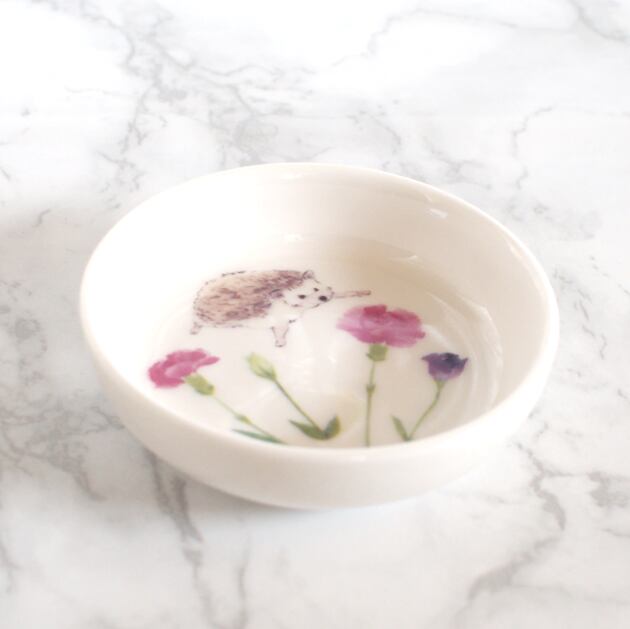 ハリネズミとカーネーションを組み合わせた可愛いミニ小皿になります。